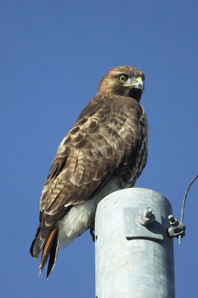 Red-tailed Hawk in its natural habitat, a power pole.