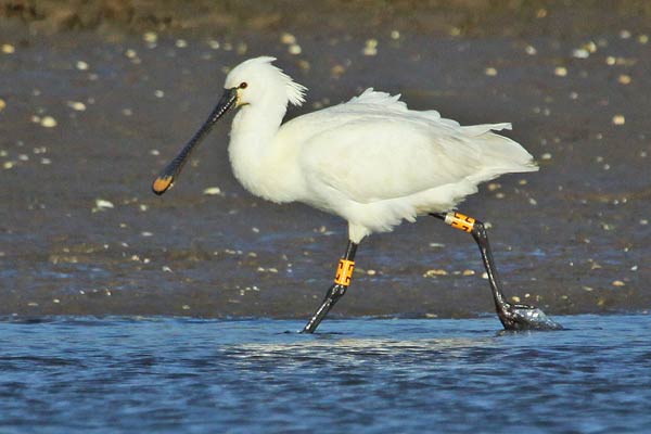 Because of their size, colour-rings are most suitable for use on long-legged birds and the first ones we saw in the Algarve were on Greater Flamingos. It’s not unusual to see up to 1,000 or even 2,000 Greater Flamingos at Castro Marim so there is plenty of scope for reading rings if we have the time and can get close enough to the birds! We soon found that, as well as Flamingos, quite a high percentage of Spoonbills were also colour-ringed and that several species of gulls, particularly Audouin’s Gulls, were also ringed. We have now sent reports relating to 18 different species and these have originated from more than a dozen countries.